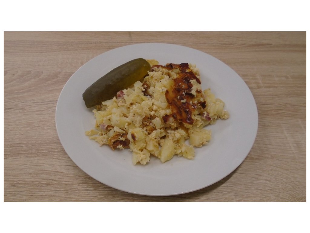 Složení: brambory, uzené maso kousky, vaječná melanž, cibule, olej, sůl, pepř.